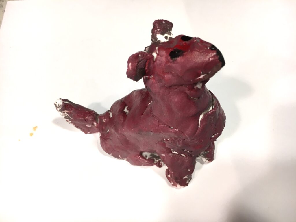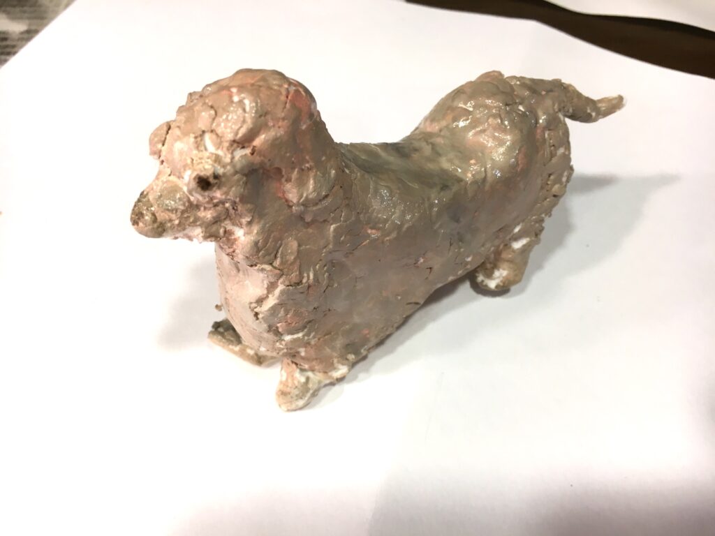 Working with paper clay, we shaped the body, then the legs, then the ears. As we lengthened the nose, the face of their beloved dog surely came to mind. Many shared stories of their cherished pets while creating.