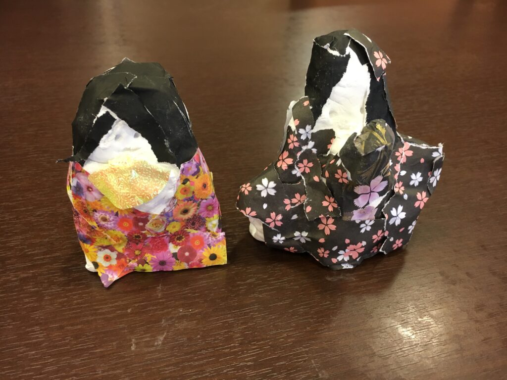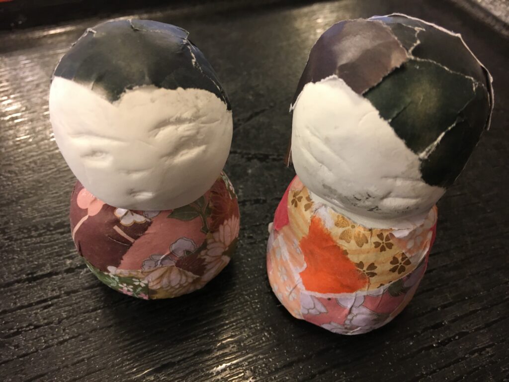 As the dolls would be finished with collage, I selected the paper – chiyogami would be ideal, not just for its vibrant patterns, though choice depends on individual taste.As the papier-mâché needed time to dry before the collage work, I allocated two sessions in February for the making.