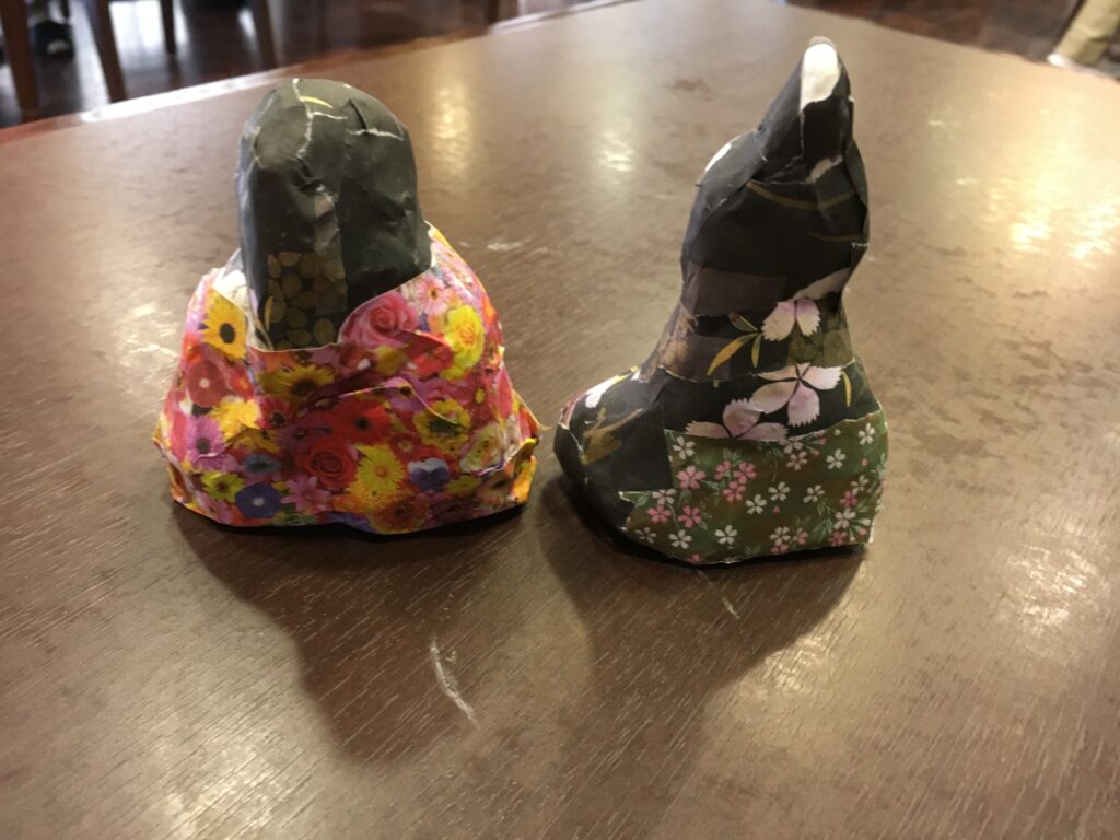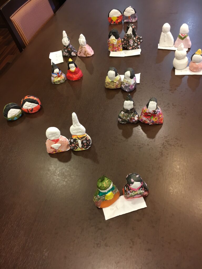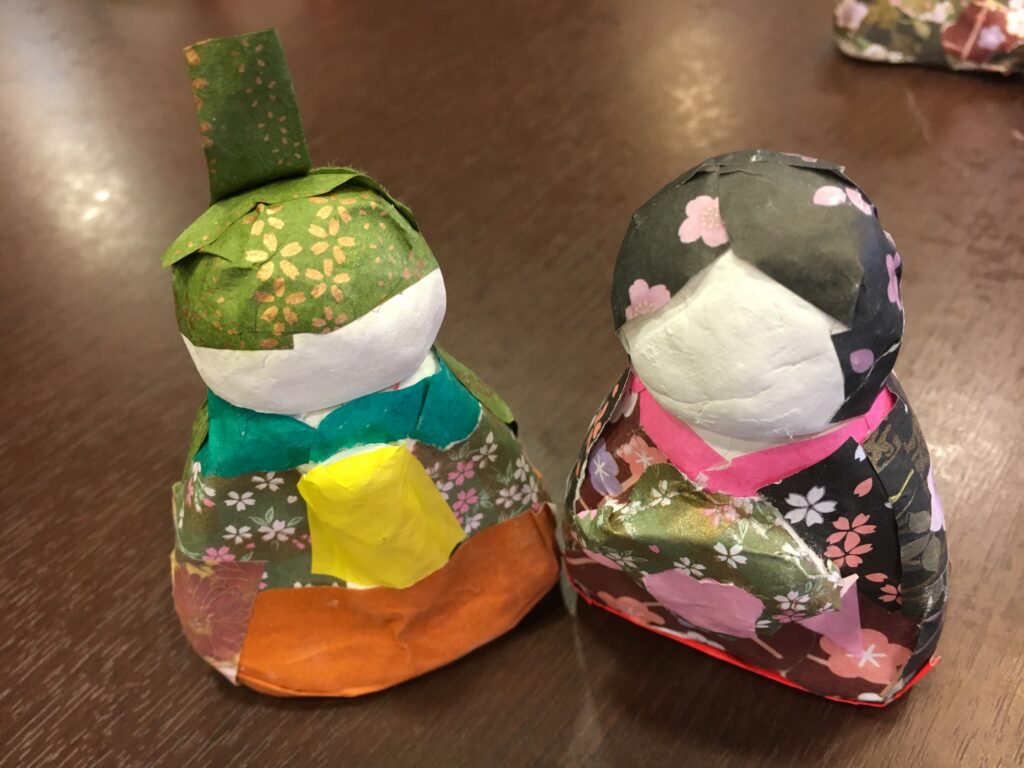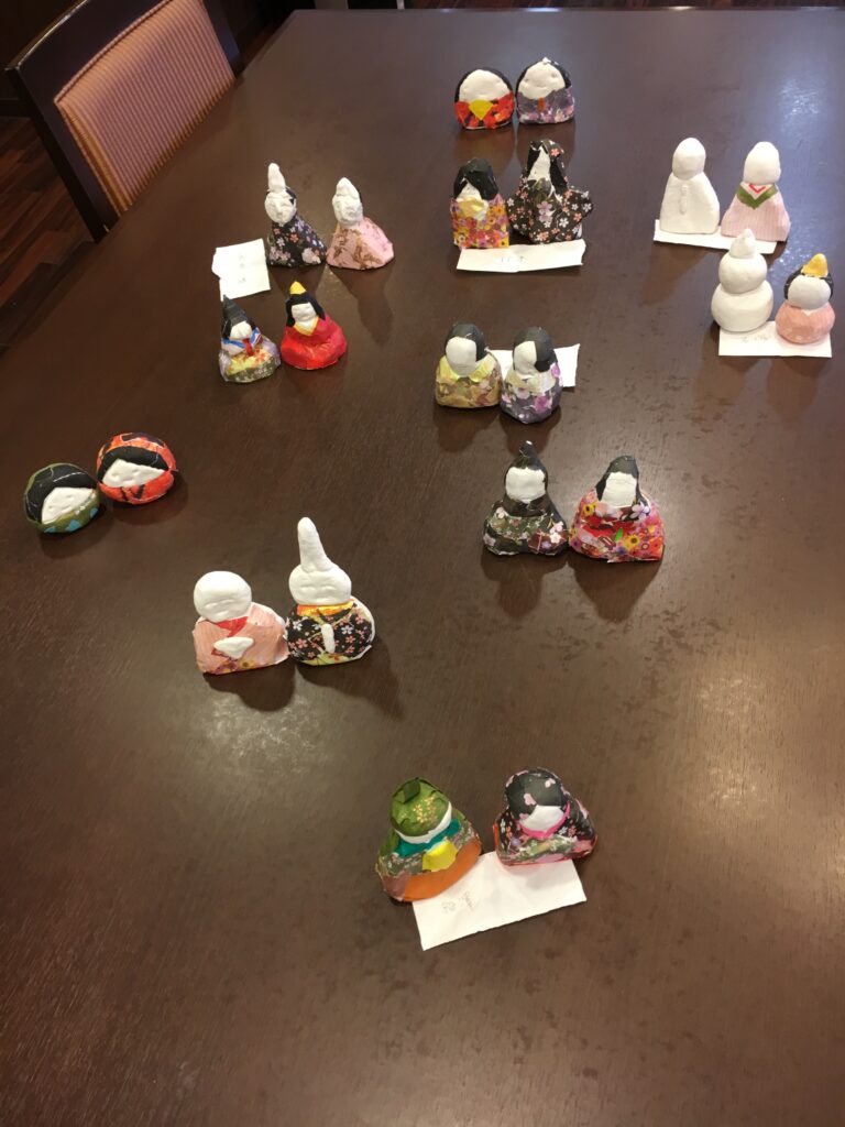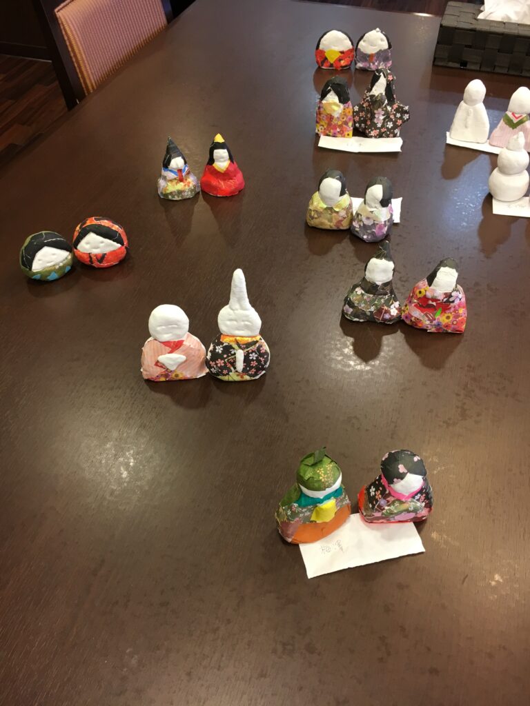 3月にはお雛様、それは定番の楽しい行事だ。3月3日のお雛様に間に合うように、ご自分で作ったお雛様が出来上がるように計画を組んだ。紙粘土で、私自身が試作し、難しそうなところを確認する。貼り絵で仕上げるので、紙を選ぶが、これは千代紙が良いだろう、華やかな模様だけではないが、選び方は個性による。