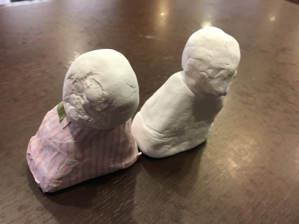 実際に制作する段階で、皆さんが困っていたのは「顔」だった。お顔の表情をどうするか、さすがに長い年月の経験から、人形の命は「顔」であることを知ってらっしゃるのだ。とうとう、目鼻を作らずに終えた方もいた。