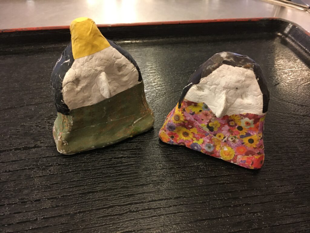 紙粘土が乾くのを待ってから、貼り絵をするので、2月の2回を制作時間に充てた。